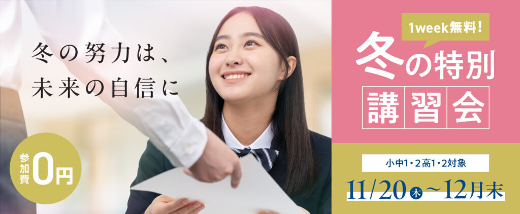 対象:小学1~6年生、中学1~2年生、高校1~2年生 ※受験生は除く期間:2025年11月14日(金)~12月末