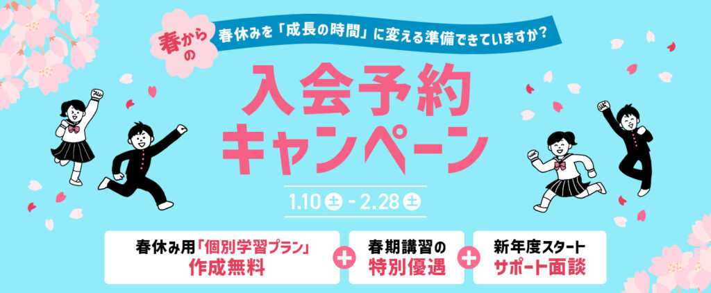 「受講料割引」「優先案内」「追加コマ」 など、春の学習に力を入れたいご家庭に最適です。